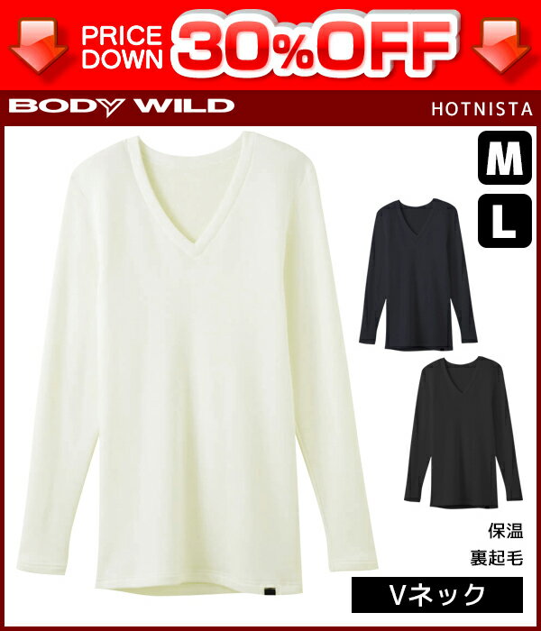 30%OFF BODYWILD ボディワイルド HOTNISTA VネックロングスリーブTシャツ 長袖V首 グンゼ GUNZE ボディーワイルド BODY WILD | 紳士肌着 男性下着 ティーシャツ メンズインナー インナーウェア アンダーウェア あったか あったかインナー 暖かい 秋冬用 訳あり