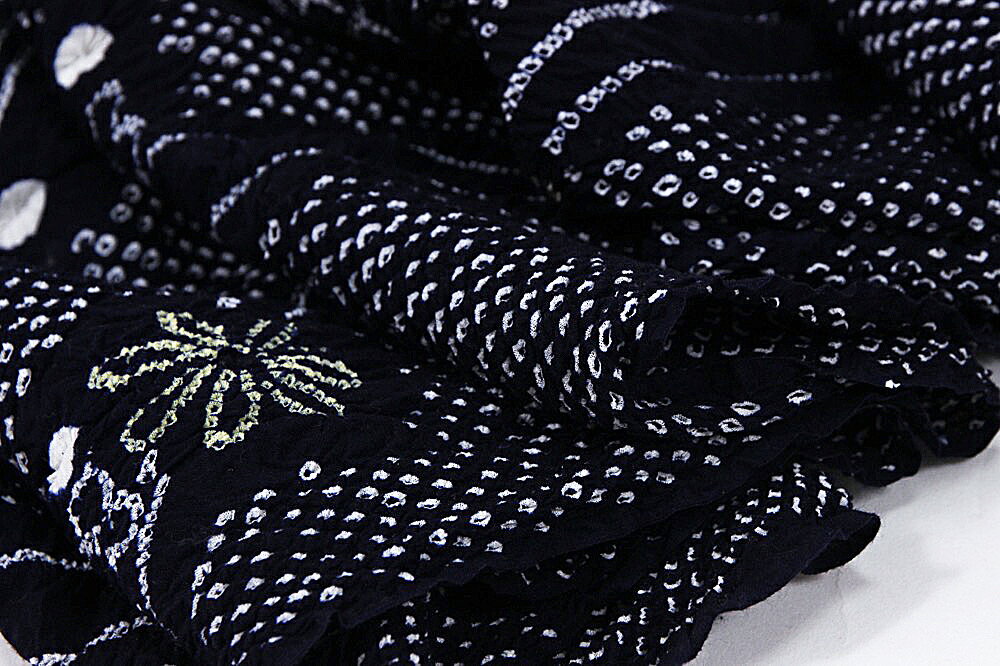 呉服屋 訳あり 女物 絞り浴衣 反物 紺×白×黄 未仕立て品 有松鳴海しぼり 生地 上品 女浴衣 ゆかた 有松絞り 鳴海絞り 総絞り浴衣 洋服にも仕立てられます 日本製 綿100% 流行に左右されない レトロ ロマン レディース 婦 送料無料 送料込み